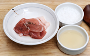 1. 돼지고기에 생강즙과 소금, 후춧가루를 넣어 숙성한다.