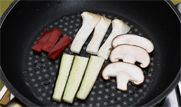 5. 새송이와 가지, 표고, 홍피망은 팬에서 굽는다.