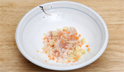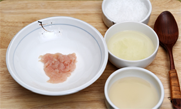2. 으깬 생선살에 맛술 과 생강즙, 소금을 넣어 골고루 치댄다.
