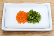4. 미나리와 당근, 양파는 입자있게 다져 놓는다.