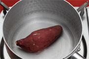2. 고구마는 삶아 준비하고, 감자는 웨지 감자형으로 썰어 익힌 후 기름에 튀겨 놓는다.