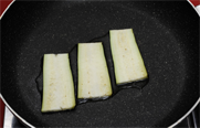 2. 팬에 올리브 오일을 살짝 둘러 썰어놓은 가지를 소금을 넣고 살짝 익힌다.