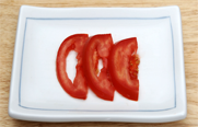 3. 토마토는 반은 토마토 형태로 납작하게 썰어 놓는다.