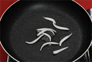 5. 팬에 기름을 넣고 팬이 뜨거울 때 양파를 넣어 재빠르게 볶아낸다.