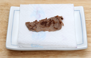 3. 양념된 소고기를 팬에 구워 냅킨위에 올려 기름을 빼놓는다.