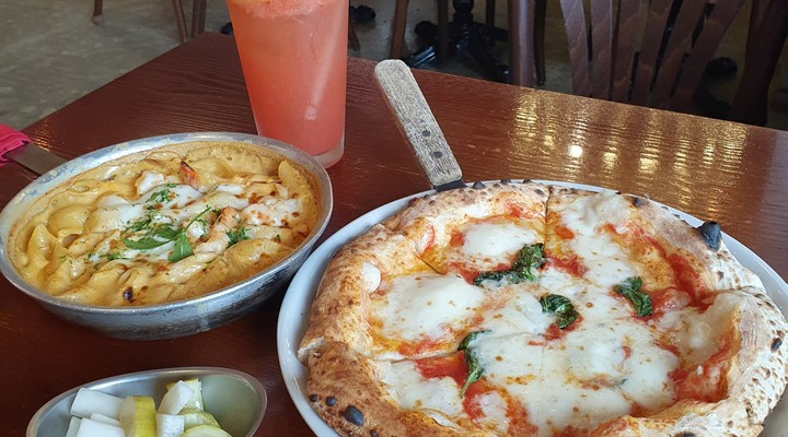 이곳은 스파게티 콘 감베레띠(18,500원), 루꼴라 페스토(24,000원), 꽈트로 스타지오네(26,000원), 콰트로 풍기(21,000원), 마르게리타 디 부팔라(20,000원) 등의 메뉴를 제공하고 있습니다.