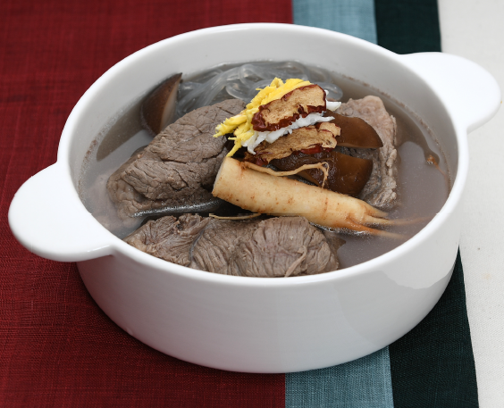 소고기(갈비, 300g), 인삼(2뿌리), 당면(50g), 표고버섯(1개),