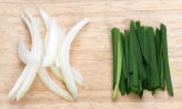 4. 부추는 5cm 길이로 썰고, 양파는 채썰고, 배는 껍질을 벗겨 슬라이스로 썰어둔다.