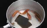 1. 다시마, 건새우, 물을 약 20분 정도 끓인 뒤 체에 걸러 육수를 만든다.