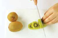 4. 키위는 껍질을 벗기고 둥근 모양 으로 썬다.c