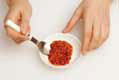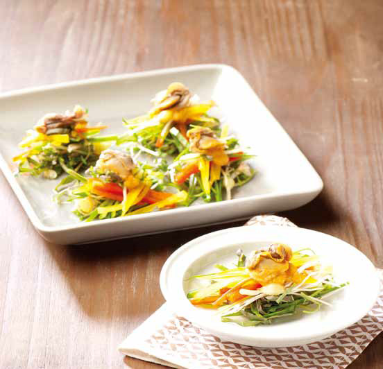 5. 꼬막과 달래, 깻잎, 파프리카에 소스를 넣고 버무린다.