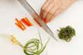 4. 달래와 깻잎, 파프리카를 5cm로 썬다.c
