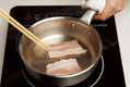 3. 가지는 찌고, 미나리와 베이컨은 데친다.c