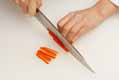 2. 가지는 길게 자르고, 미나리는 잎을 떼고, 파프리카는 채 썬다.b