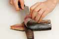 4. 고등어는 세장 뜨기로 살을 발라낸 후 가시와 껍질을 제거하고 어슷하게 2등분해 생강즙과 술, 레몬즙으로 재워둔다.b