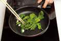 6. 팬에 기름을 두르고 다진 마늘과 시금치를 넣어 볶고, 방울토마토는 팬에 익힌다.c