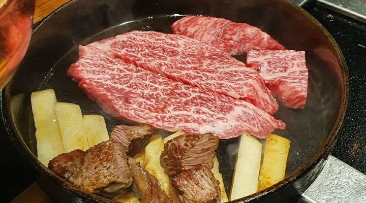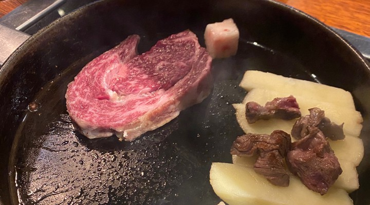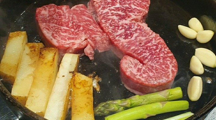 이곳은 특안심 (150g)(49,000원), 채끝등심 (150g)(49,000원), 특등심 (150g)(47,000원), 살치살 (130g)(55,000원), 치마살 (130g)(53,000원) 등의 메뉴를 제공하고 있습니다.