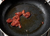 3. 식용유를 두른 팬을 약한 불로 달궈 다진 마늘을 볶다가 토마토페이스트를 넣어 볶는다.