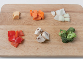 재료 고구마(10g), 당근(10g), 양파(10g), 파프리카(30g), 양송이버섯(10g)