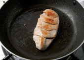 3. 닭가슴살은 칼집을 내 닭밑간양념한 뒤 팬에 식용유(10g)를 둘러 80%정도 익힌다.