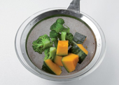 2. 단호박과 브로콜리는 한입 크기로 썰어 데친다.