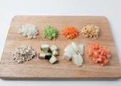 재료 양파(80g), 셀러리(15g), 당근(15g), 사과(30g), 양송이버섯(20g)