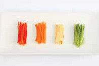 3. 오이, 사과, 당근, 빨강 파프리카는 4cm 길이로 가늘게 채 썬다.b