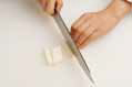 4. 마는 껍질을 제거하고 썰어 망고로 감싼 후 랩으로 말아 고정시킨다.b