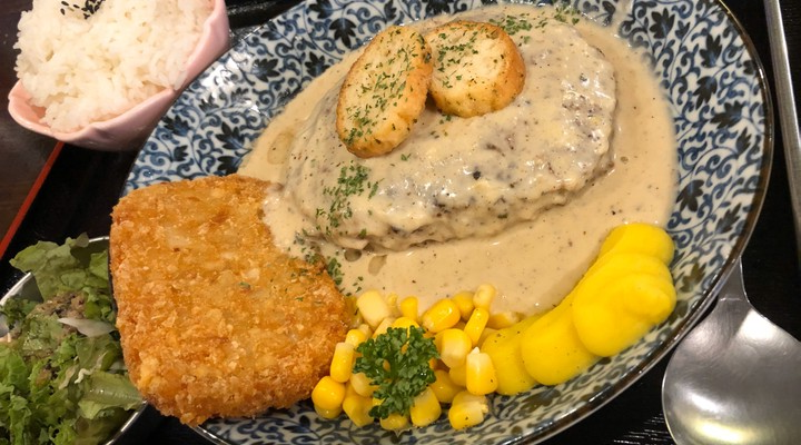 이곳은 크림소스 함바그 스테이크(10,500원), 토마토 치즈 함바그 스테이크(10,500원), 로코모코(13,000원), 타코라이스(9,000원), 차슈사라다 우동(9,500원) 등의 메뉴를 제공하고 있습니다.