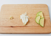 2. 마늘은 다지고, 양파는 채 썰고, 애호박은 반달모양으로 납작하게 썬다.