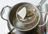 1. 냄비에 육수 재료를 넣고 10분간 끓여 건진다.