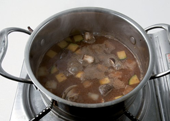 5. 육수에 보리된장을 풀고 호박, 양파, 표고버섯을 넣고 끓인다.
