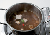 3. 검은콩 삶은 물(200g)에 바지락, 멸치, 다시마를 넣고 끓여 육수를 만든다.