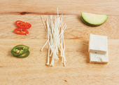 재료 풋고추(1g), 붉은 고추(1g), 애호박(5g), 팽이버섯(5g), 두부(20g)