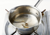 1. 물(250g)에 멸치를 넣고 육수를 낸다.