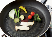 3. 새송이버섯, 가지, 브로콜리, 양파, 파프리카, 방울토마토, 아스파라거스는 올리브유에 구워 준비한다.