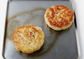 2. 스테이크 반죽을 동글납작하게 빚고 팬에 식용유를 살짝 둘러 구운 뒤 140℃로 달군 오븐에서 30분간 굽는다.