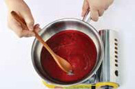 2. 프라이팬에 버터를 두르고 다진 마늘을 볶은 후 레드와인, 흑설탕, 생강, 핫소스, 청양고추를 넣고 끓 여 소스를 반으로 졸인다.a