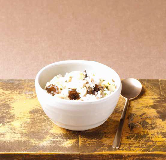 쌀 200g(1컵), 감자 200g(1개), 양파 100g(1/2개), 양송이버섯 50g(3개), 목이버섯 5g(3개), 칵테일새우 15g(3개), 깻잎 10g(12장)