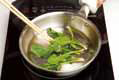 4. 시금치는 데친 후 다져 참기름과 다진 마늘을 넣어 무친다.b