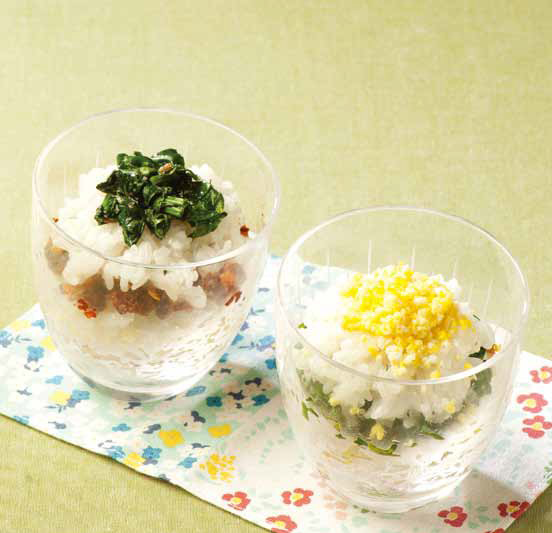 7. 밥과 준비된 재료를 층층이 쌓아 완성한다.