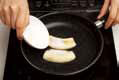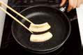 2. 가열된 팬에 기름을 두르지 않고 바나나를 굽는다.b