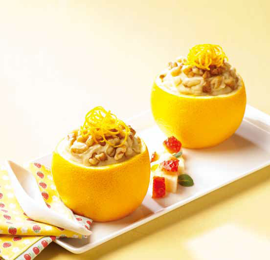 오렌지주스 50g(1/4컵), 휘핑크림 20g(4작은술), 시나몬가루 1g, 넛맥가루 1g, 호두 40g