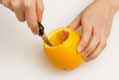 1. 오렌지는 속을 파내 컵을 만들고, 오렌지속은 즙을 만든다.a