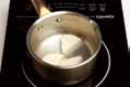 4. 가열된 팬에 무염버터를 넣어 녹인 후 고구마를 넣고 볶다가 흑설탕, 다진 호두, 시나몬가루, 넛맥가루, 오렌지 즙과 휘핑크림을 넣어 섞는다.b