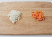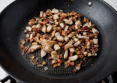 4. 팬에 기름을 두른 후 재워둔 닭고기와 당근, 양파를 볶는다