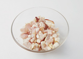 2. 닭고기를 깨끗이 씻은 후 끓는 물에 살짝 데쳐 기름기를 제거한 뒤 작게 썰어 대추, 수삼과 함께 맛술에 재워 잡냄새를 없앤다.