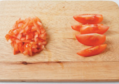 3. 토마토는 200g은 잘게 다지고, 100g은 두툼하게 썬다.