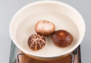 2. 표고버섯은 물에 데친다. 이때 표고버섯 불린 물은 버리지 않고 짜투리 채소와 함께 채소 국물을 만들어준다.