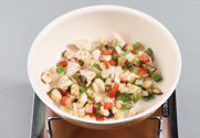 6. 여기에 볶아진 재료를 넣고 소금으로 간을 하고 말린 토마토를 올려 완성한다.